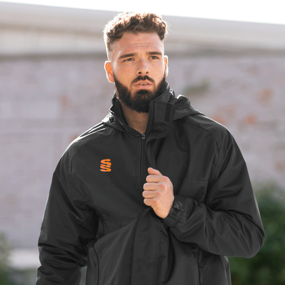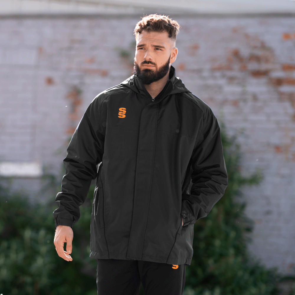 The Dual Fleece Lined Jacket is made with a thick wax coated outer shell, fully waterproof, with a soft warm fleece lining. Taped seams add further waterproofing protection. It features a concealed hood with pull cords, 2 zip pockets and a placket zip cover on the body and pockets. To finish, our Surridge SS logo is situated on the right chest.