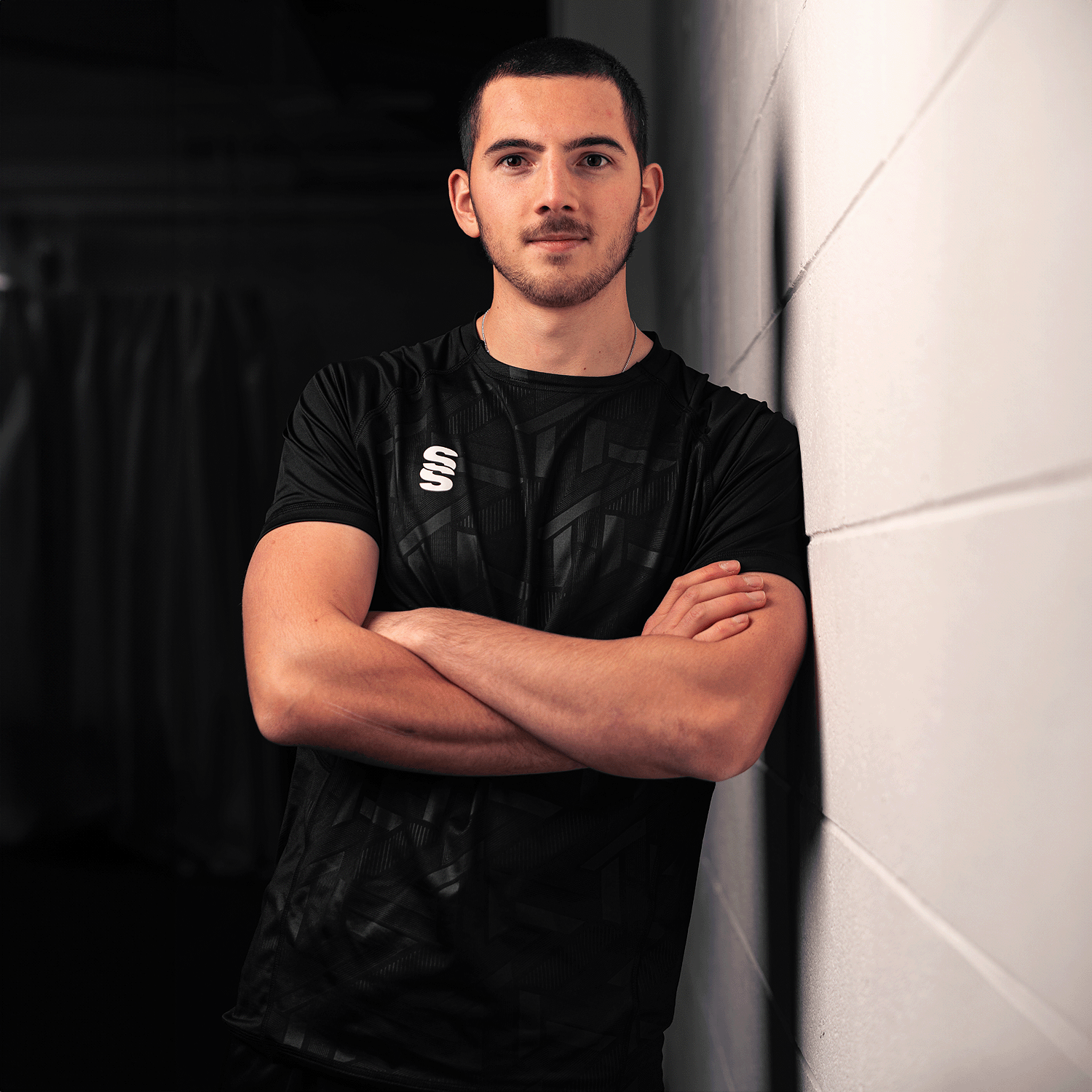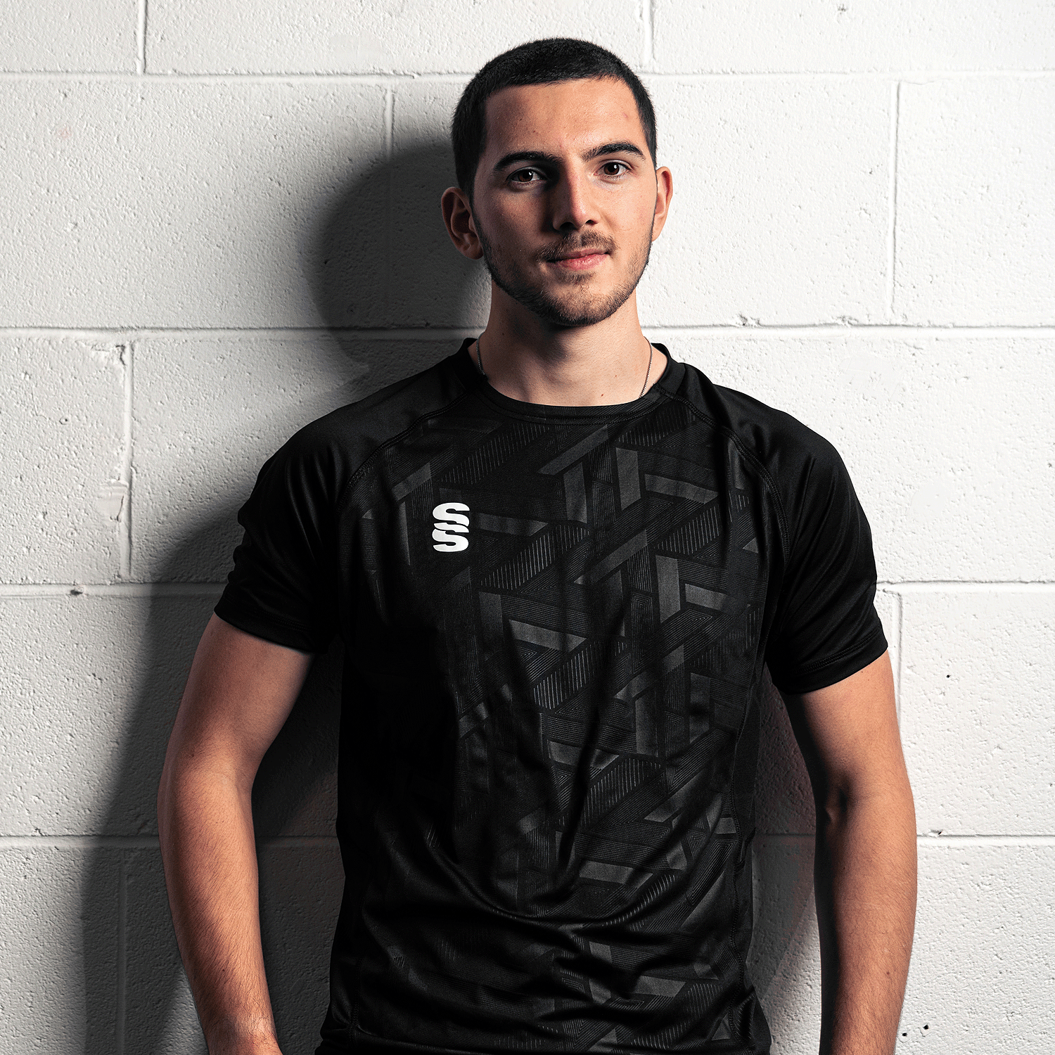 Crew neck fitted polyester interlock material with highly modern print to the from panel